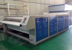 熨平機的調(diào)試常和其試運行同時進(jìn)行。為此,須在設(shè)備調(diào)試時,將一定數(shù)量的、用水浸透并經(jīng)甩干烘干的布草織物備好待用。